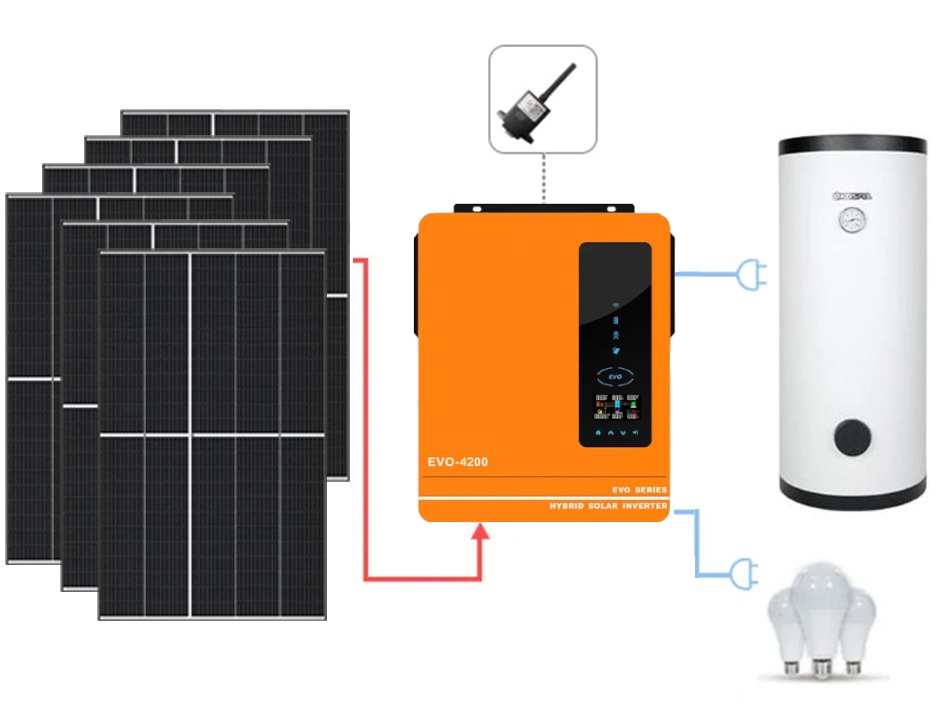 Magazyn ciepła zestaw fotowoltaiczny do grzania wody MPPT do grzałki w bojlerze 4kW OFF-GRID 6xPV to najprostszy system grzania wody w bojlerach dostępny na rynku.